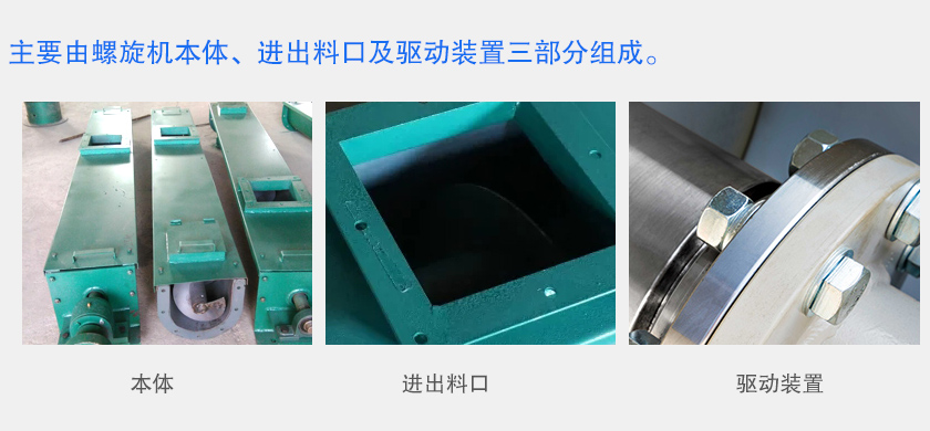 粉末螺旋輸送機(jī)主要由螺旋機(jī)本體、進(jìn)出料口及驅(qū)動(dòng)裝置三部分組成。