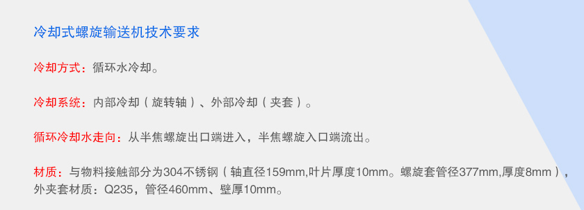 循環(huán)冷卻水走向:從半焦螺旋出口端進(jìn)入,半焦螺旋入口端流出。