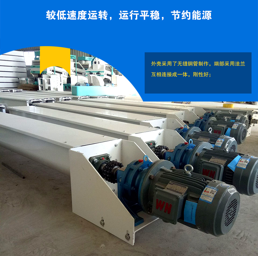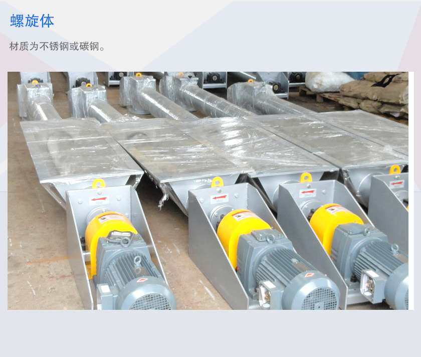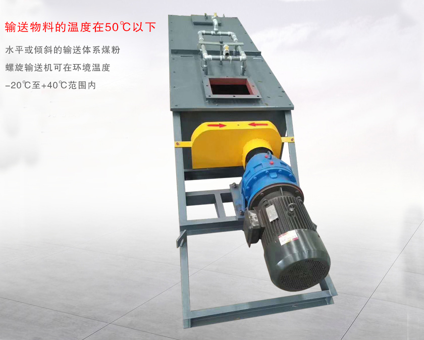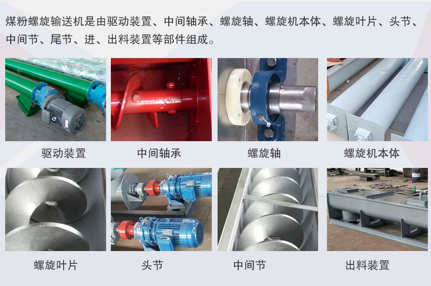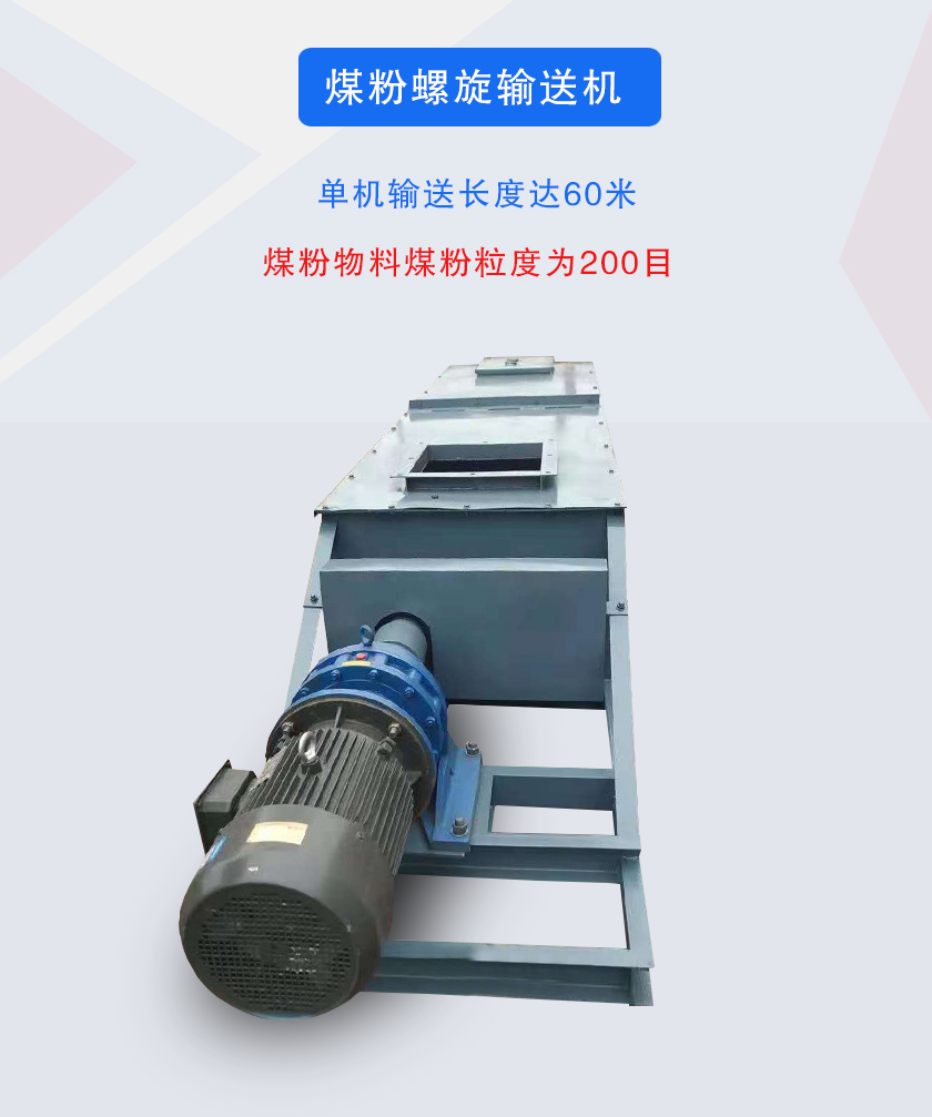 煤粉螺旋輸送機(jī)是由驅(qū)動(dòng)裝置、中間軸承、螺旋軸、螺旋機(jī)本體、螺旋葉片、頭節(jié)、中間節(jié)、尾節(jié)、進(jìn)、出料裝置等部件組成。