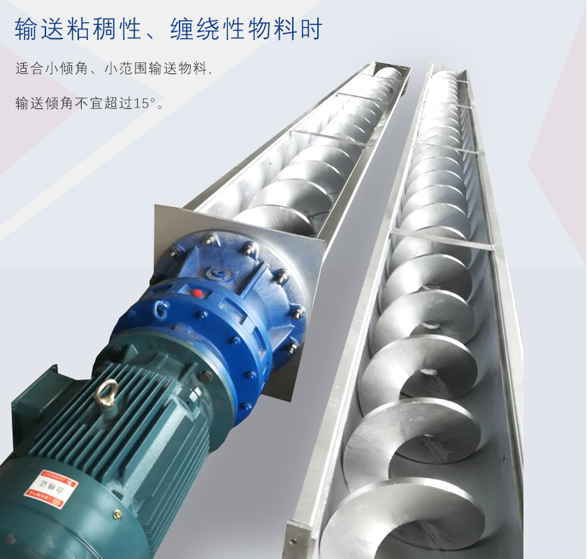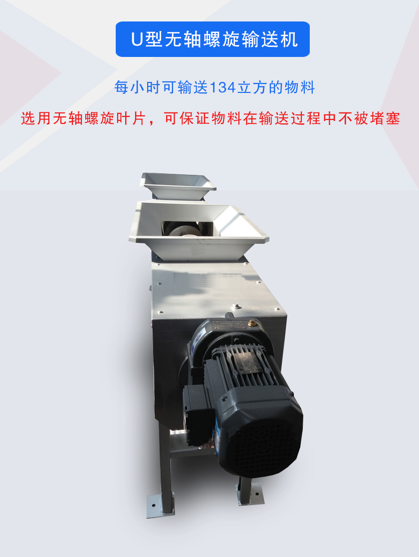 1、選用無軸螺旋葉片,可保證物料在輸送過程中不被堵塞。