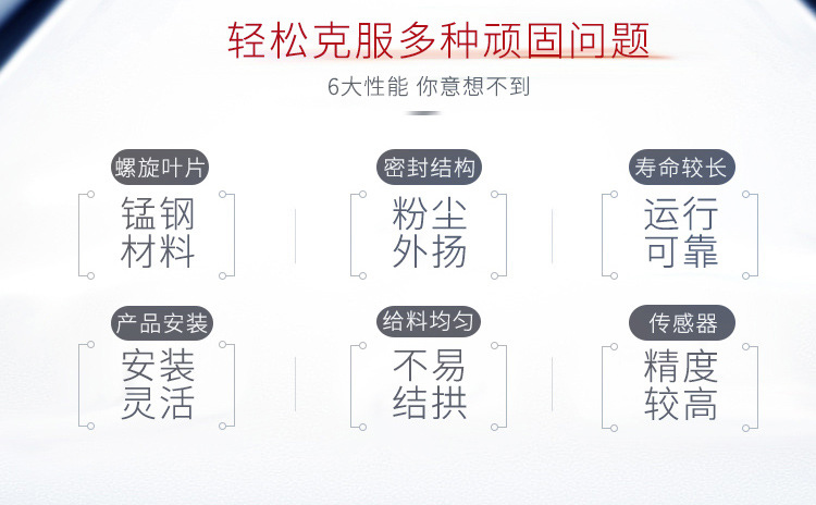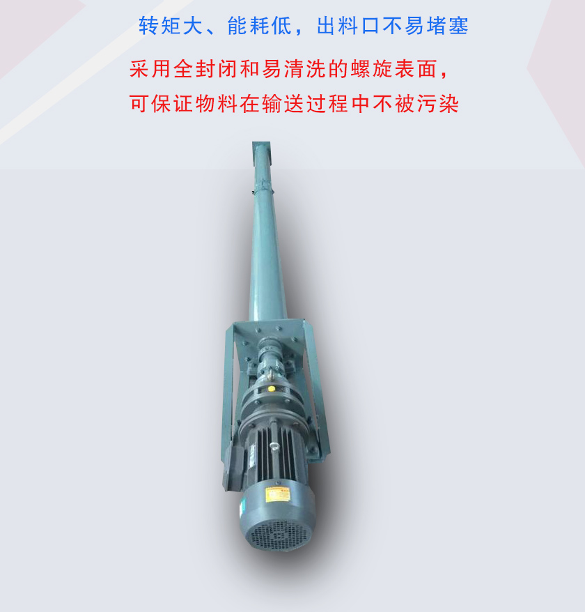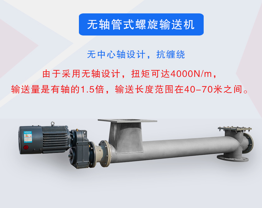 3、由于采用無軸設計,扭矩可達4000N/m,輸送量是有軸的1.5倍,輸送長度范圍在40-70米之間。