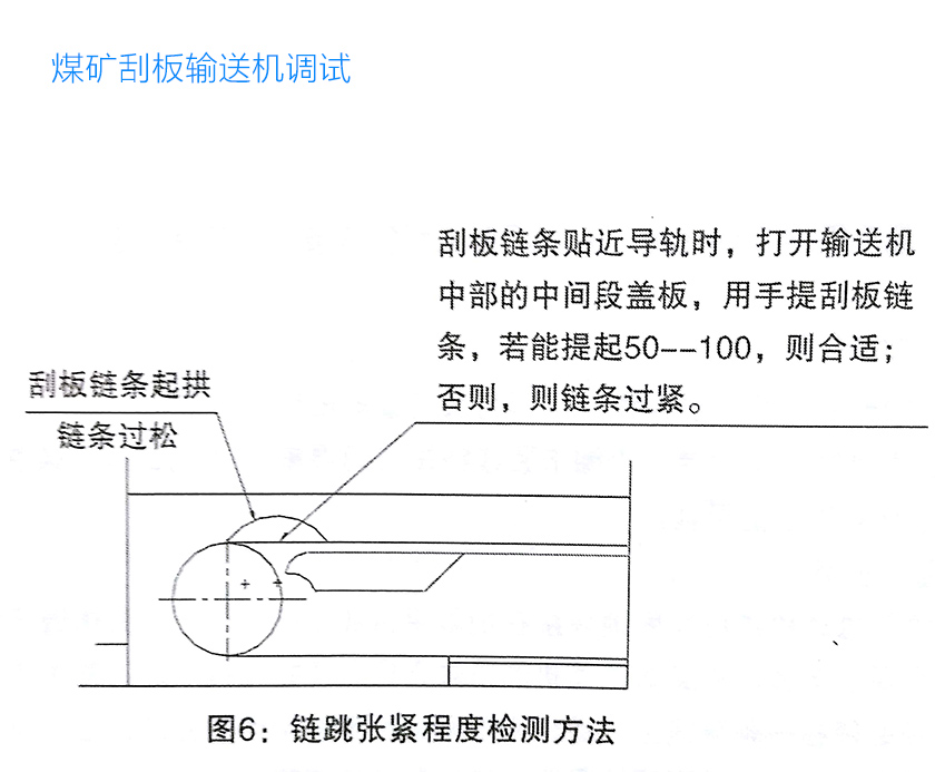 機尾部由機尾架、機尾軸、緊鏈裝置、導(dǎo)鏈輪或機尾滾筒組成;導(dǎo)鏈輪用來改變刮板鏈方向;緊鏈裝置用來調(diào)節(jié)刮板鏈松緊。
