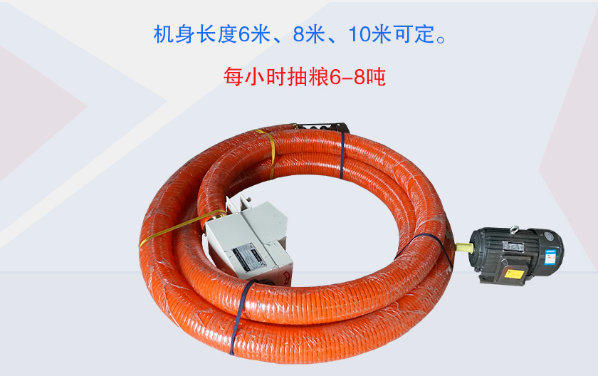 1、機身長度6米、8米、10米可定。每小時抽糧6-8噸,機器重量60-75公斤。