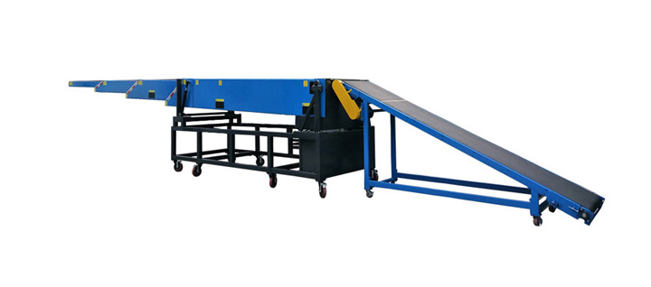伸縮皮帶輸送機(又名伸縮裝車機),增加了儲帶裝置和收放皮帶裝置,通過一個操作桿或操作按鈕即可實現(xiàn)在長度方向上自由伸縮,隨時控制輸送機的長度,通過任意的伸縮運動,完成貨物的輕松高效裝卸。