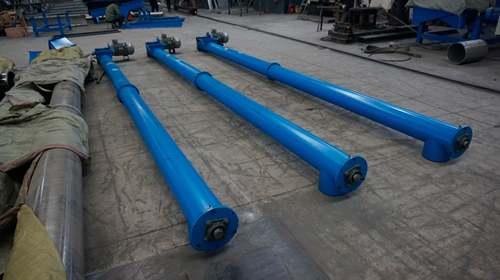 大型:LS800,螺旋直徑800mm,螺距500mm,轉(zhuǎn)速40r/min,輸送量198.5m³/h。