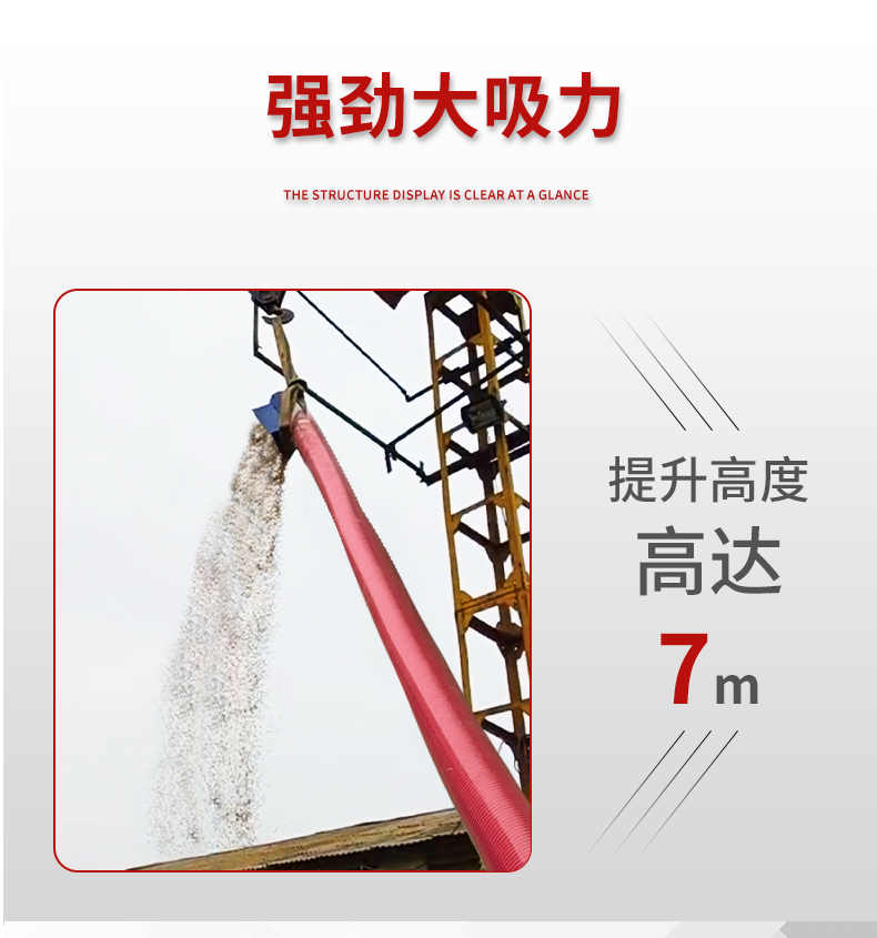 1、一機(jī)多用,可吸糧,也可用于粒狀肥料、飼料、化工產(chǎn)品等無腐蝕性的粒狀物料,一小時(shí)可收糧6-8噸。