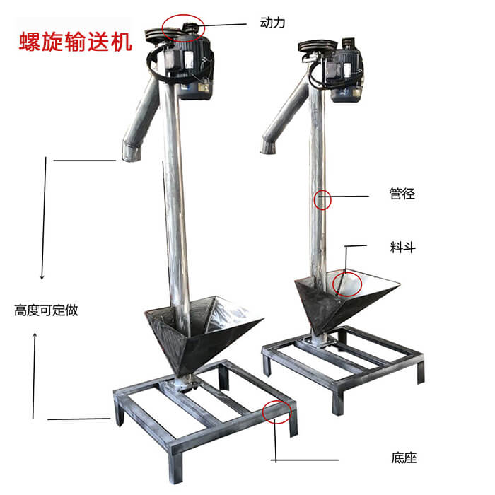 垂直螺旋輸送機(jī)由水平進(jìn)料螺旋和垂直螺旋組成,從料倉(cāng)或料斗或從上游進(jìn)料裝置進(jìn)料,保證進(jìn)料有足夠的倉(cāng)壓,確保物料能順利地向上輸送,垂直提升高度可達(dá)8米。