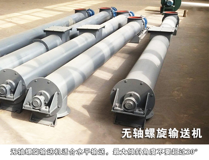 無軸螺旋輸送機適合水平輸送,傾斜角度不要超過20°(根據(jù)實際的使用情況而言。)