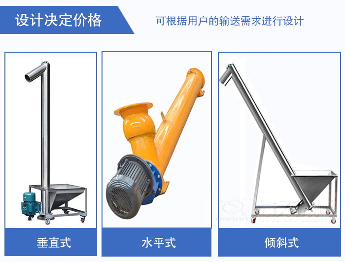 螺旋輸送機根據(jù)用戶的要求可以設計成垂直式的、水平式、傾斜式的,可根據(jù)用戶的輸送需求進行設計,由于設計與產(chǎn)品的制造工藝有關,每個廠家對于螺旋輸送機的工藝不同,這就決定了螺旋輸送機價格的高低。