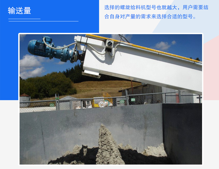 輸送量大小將直接決定設備型號大小的選擇,用戶所需產量越大,選擇的螺旋給料機型號也就越大,用戶需要結合自身對產量的需求來選擇合適的型號。