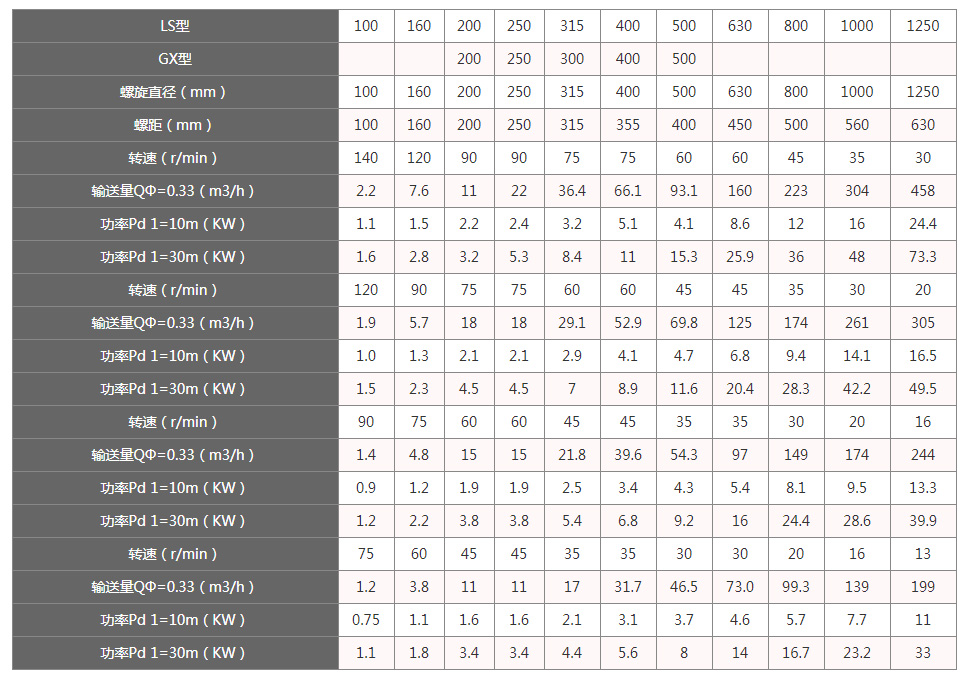 附 螺旋給料機參數表: