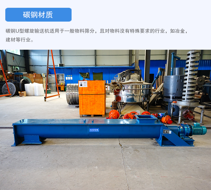 碳鋼U型螺旋輸送機(jī)適用于一般物料篩分,且對物料沒有特殊要求的行業(yè),如冶金,建材等行業(yè)。